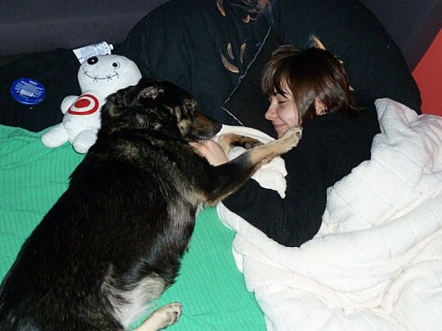 Weterynarz jest zadowolony z jej ogólnego stanu zdrowia-odmrożenia ładnie schodzą, opuchlizna sutków pomału się zmniejsza, oskrzela są już czyściutkie a zapalenie uszu pomału przechodzi.