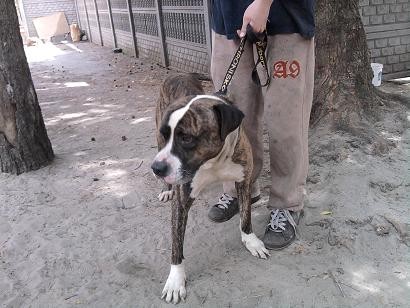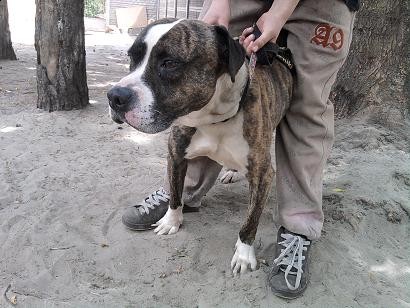 Ali to starszy, średniej wielkości samiec amstaff. Jest bardzo spokojny jak na psa tej rasy, nie wchodzi w konflikty z innymi psami, uwielbia spacery z ludźmi, szczególnie ze swoją wolontariuszką Dominiką. Niestety od jakiegoś czasu Ali ma się coraz gorzej - najbliższa zima będzie bardzo ciężka dla tego psa - dlatego PILNIE POTRZEBNY JEST DOM DLA TEGO PSA!
