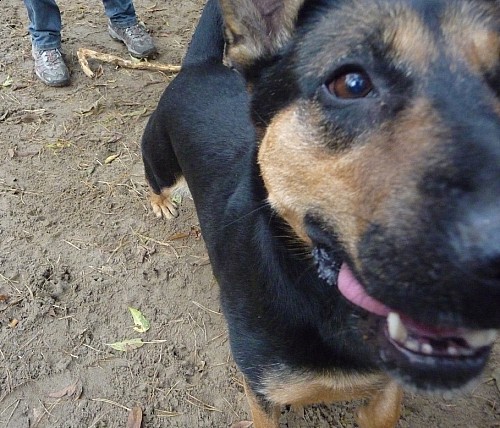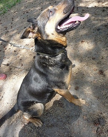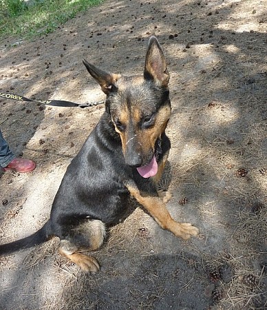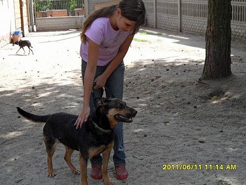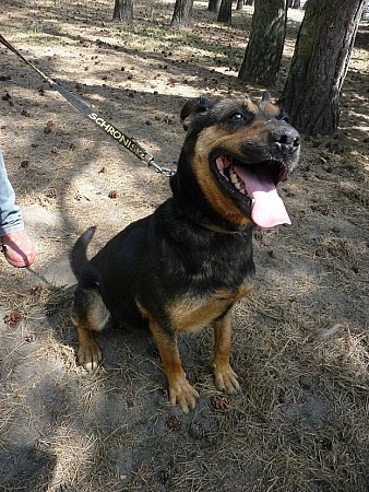 Nel to około 8 letnia suczka, mix owczarka niemieckiego. Ma skrzywioną szyję. Jest bardzo przyjacielska.