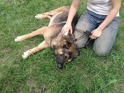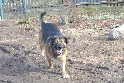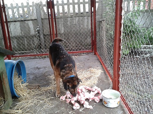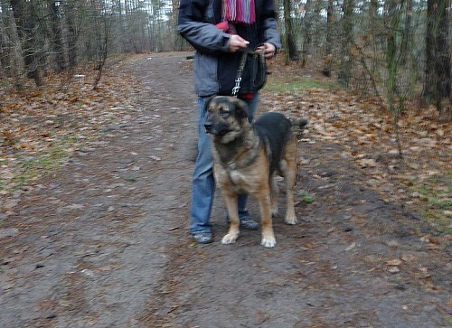 Jantar to duży samiec, ma ok 4 lata. Jest bardzo uległy, dlatego też inne psy wyczuły to i teraz jest przez nie przeganiany. Cały czas siedzi w budzie... Toleruje inne psy, nie jest w żaden sposób agresywny do nich. Spokojny, opanowany i grzeczny. Do ludzi jest przyjazny i łagodny. Lubi spacery i w miarę ładnie chodzi na smyczy. Uwielbia pieszczoty i drapanie po brzuchu. Musi czuć się potrzebny, kochany i wyjątkowy. W listopadzie 2011 roku Jantar został umieszczony na wybiegu dla psów wystraszonych i staruszków - ma tam więcej spokoju, już spokojnie chodzi po wybiegu.