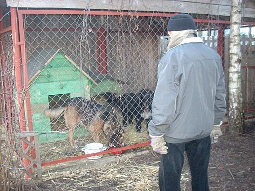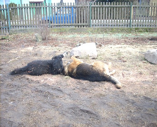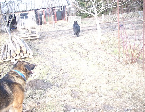 Pieski na nowym wybiegu... Biegają tak szybko, aż się bałam, że nie wyhamują. Bez smyczy, bez tłoku i na cztery ręce do głaskania... Pozdrawiam####2011-10-24: Jantar wygląda ze swojej budy####2011-12-30: Jantar na spacerku w grudniu 2011 r.####2012-02-26: Janatar w zabawie z Babajagą####2012-02-26: Jantar mega szczęśliwy:-)####2012-02-26: Jantar pilnuje swoją młodszą podopieczną####2012-03-03: Jantar dumny ze swoją Panią:-)####2012-03-03: Jantar z Babajagą mieszkają w fajnie przygotowanym kojcu, ale większość dnia biegają po ogrodzie####2012-03-23: Takie smakołyki to tylko u Pani Basi:-)
