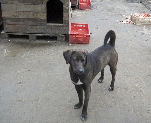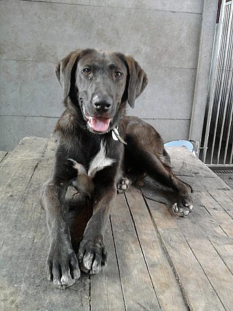 Grafit to średniej wielkości samiec. Ma około 3-4 lata, od dwóch lat przebywa w schronisku. Jest ślicznym psem o bardzo ciekawym umaszczeniu: czekoladowe z białymi znaczeniami. Pod koniec kwietnia 2012 roku Grafit został wykastrowany dzięki funduszom z wirtualnej adopcji:-) Od czerwca 2013 r. przebywa na wybiegu z innymi psami. Najchętniej przesiaduje na budzie, obserwując cały wybieg. Grafit chętnie wychodzi na spacery do pobliskiego lasu. Z przyjemnością obwąchuje okolicę. Biegając bez smyczy nie oddala się zbytnio i przychodzi na zawołanie. Choć wciąż jeszcze wrażliwy na bodźce z otoczenia, nie reaguje już na nie paniką. Spacerując na smyczy po Obornikach spokojnie idzie przy nodze. Wzbudza zainteresowanie i zachwyt wielu napotkanych ludzi.