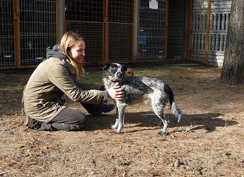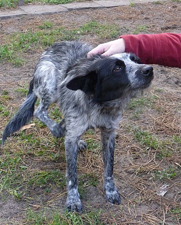 Antek to mały piesek, z bardzo ciekawym umaszczeniem. W sumie to jeszcze szczeniak, nie ma nawet roku. Bardzo przerażony jest schroniskiem, ale powoli się przyzwyczaja do otaczających go warunków... Toleruje inne psy, a wręcz boi się ich. Nie potrafi chodzić na smyczy, ale wolontariusze pracują nad nim. Lubi być głaskany i drapany za uszkiem, pozwala brać się na ręce. Do obcych ludzi nie chce podchodzić, dopiero po chwili nabiera pewności siebie. Maluch jest łagodny i przyjazny. Czeka na dobry dom!