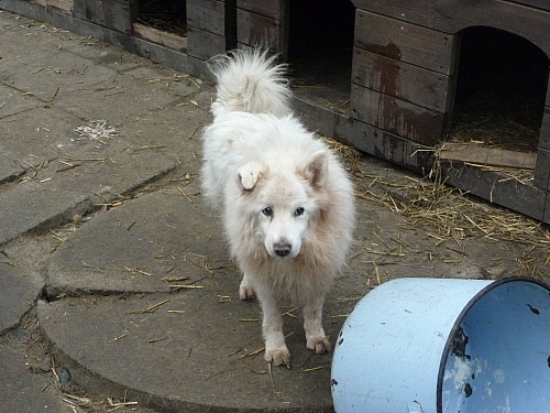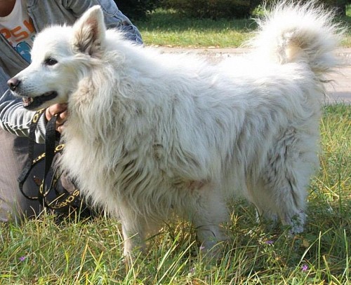 Jest bardzo przyjaznym psem, ale niezbyt ufnym. Wygląda na starszego psa.