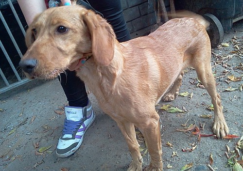Cent to młody piesek - przywieziony do schroniska w połowie października 2011 r.