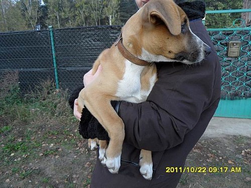 Pyza pod koniec 2011 roku została adoptowana, w pierwszych dniach stycznia 2012 roku otrzymaliśmy pozdrowienia i zdjęcia z nowego domku Pyzy.####2012-01-08: Pyza ze swoją nową Panią:-)####2012-01-08: Pyza już trochę podrosła...