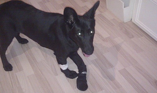 Załączamy zdjęcie Murzynki z nowym bucikiem, który umożliwia jej stawiać odpowiednio łapkę.