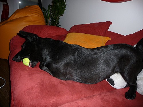 Mamy informacje z DT, gdzie obecnie przebywa Murzynka: Jest ona przekochana, wytrzymuje w domu 8-9 godzin nie brudząc, nie piszcząc, nie szczekając i nie niszcząc niczego. Żyje w wielkiej zgodzie, nawet miłości z suczką, która na stałe mieszka w tym DT, razem się bawią i razem odpoczywają....na kanapie - tak tak, nasza Murzynka powoli staje się kanapowym psem:-) zdjęcia załączamy.