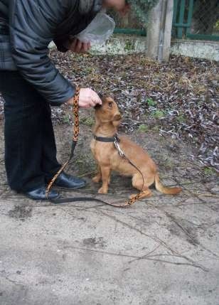 Rózia jest bardzo przyjazna do ludzi, nie boi się, ładnie chodzi na smyczy, lubi smakołyki - umie o nie prosić:-)