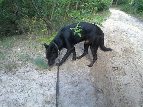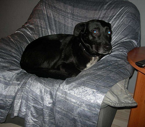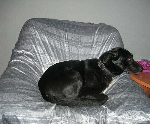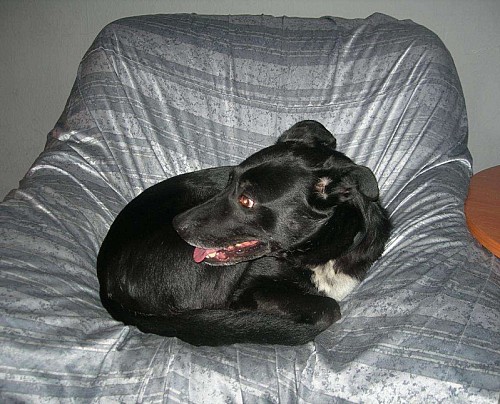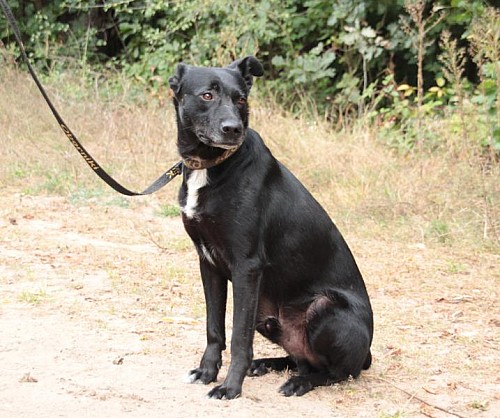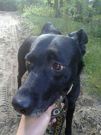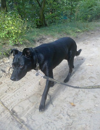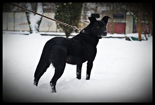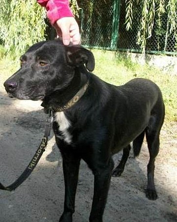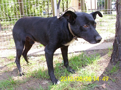 Dżim to średniej wielkości pies o pięknym czarnym umaszczeniu z białym krawacikiem, przywieziony został do schroniska z Ryczywołu 30 września 2011 roku. Dżim na początku był bardzo zalękniony, nie wychodził z budy, dlatego został umieszczony na specjalnym na wybiegu dla strachulców. Dzięki wsparciu finansowemu Opiekunki Wirtualnej 17 sierpnia 2012 roku Dżim został wykastrowany. Dżim jest już coraz śmielszy, przychodzi do ludzi, chodzi na spacerki, grzecznie idzie na smyczy, na razie boi się trochę samochodów. Uwielbia się przytulać, pierwszy jest w kolejce do głaskania i pomimo tego, że lubi poszczekać sobie na psy za płotem to jak na wybieg wchodzi jakaś Wolontariuszka wszystko przestaje dla niego istnieć, człowiek staje się numerem 1. Jest on już gotowy do adopcji. Może zamieszkać w domu z dziećmi, wiele razy był wyprowadzany przez Rodziny przychodzące na spacer z dziećmi i nawet one go prowadziły na smyczy, jest bardzo grzeczny i szybko się uczy! Dżim od lutego 2013 r. przebywa na Domku Tymczasowym w Poznaniu u Wolontariuszki Agnieszki, kontakt w sprawie adopcji: 793-952-427