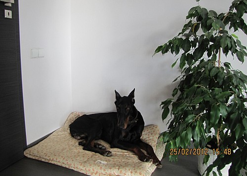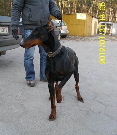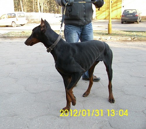 Karmel to pies doberman przywieziony do schroniska 31 stycznia 2012 roku w skrajnie wyczerpanym stanie z Gościejewa - gmina Rogoźno. Prawdopodobnie został przywiązany przez właścicieli do drzewa lub słupa, ma ślady na szyi sugerujące takie wydarzenie. Pies w warunkach schroniskowych przy obecnych mrozach nie ma odpowiednich warunków dochodzenia do zdrowia - PILNIE POTRZEBNY DOM!!
