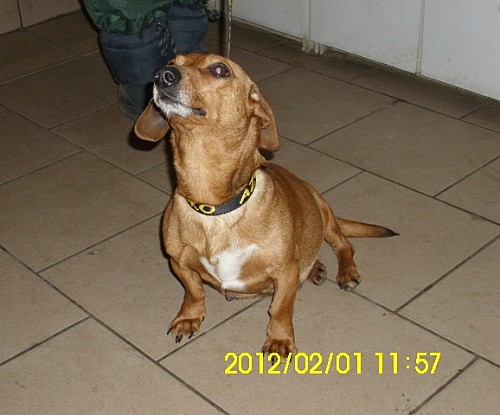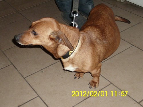Monia to suczka - jamniczka, została przywieziona do schroniska 30 stycznia 2012 roku z Bąblina - jest ciężarna.