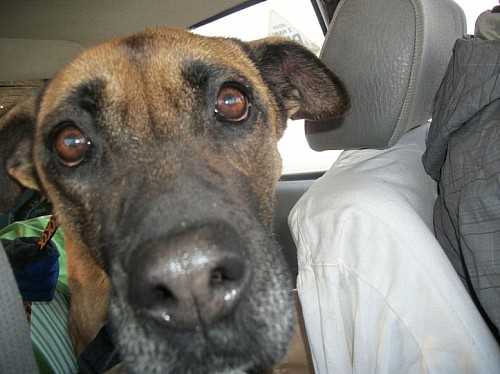 ####2012-02-14: Alfa jest mocno wychudzona...####2012-02-14: ...w głowie się nie mieści jak można do takiego stanu doprowadzić bezbronnego psa!####2012-02-14: Alfa grzeczna była w samochodzie...####2012-02-14: ...w ramach wdzięczności za zabranie jej od nieodpowiedzialnych właścicieli