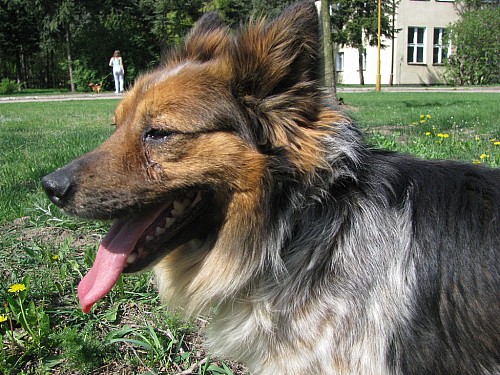 Ziggy to pies ciekawie umaszczony, długowłosy - w typie owczarka szetlandzkiego. Ma ok. 2-3 lata. Został przywieziony z Łukowa 9 marca 2012 roku. Jest lekko nieśmiały, ale dzięki pracy Wolontariuszek polubił spacery na smyczy i już teraz wypatruje ich kiedy tylko wchodzą na wybieg. Ziggy to zgodny, przyjacielski, uczuciowy, przemiły pies. Lubi przytulanie, masaż, chętnie bawi się z człowiekiem, lubi także dzieci. Jak każdy owczarek potrzebuje dużo ruchu i regularnej pielęgnacji pięknego, okazałego futerka. Nie boi się samochodu, chętnie do niego wskakuje i nie ma choroby lokomocyjnej. Ziggy nie reaguje na koty ani inne zwierzęta typu świnki morskie. Utrzymuje czystość w domu i nie hałasuje jak zostaje sam.