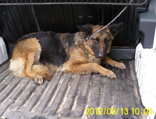 Suczka Owczarka Niemieckiego - młoda, przywieziona z Murowanej Gośliny 13 marca 2012 roku do schroniska.