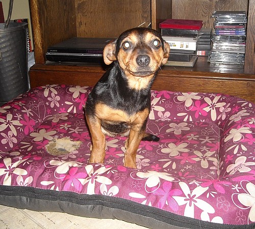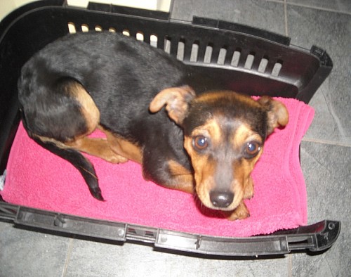 Pod koniec marca 2012 roku Fibi została adoptowana do miłej Rodziny - życzymy jej wiele szczęścia.####2012-03-14: Fibi to ciekawska psina####2012-03-14: Jest malutka mieści się w kontenerku dla kota