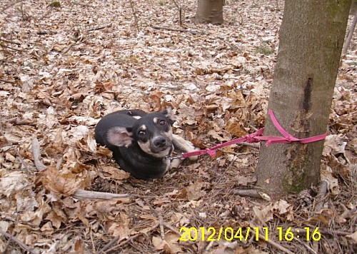 Rolka to młoda suczka, niestety jej dotychczasowi właściciele okazali się okrutnymi ludźmi i przywiązali ją do drzewa w lesie w Obornikach. Została znaleziona 12 kwietnia 2012 roku. Psinka jest mocno wystraszona całą sytuacją:-( Jeżeli wiecie Państwo kto jest właścicielem psa prosimy o informacje na adres: - zostanie on ukarany i miejmy nadzieję, że dzięki temu nie przyjdzie mu do głowy kiedykolwiek więcej w ten sposób potraktować innego zwierzęcia! Rolka została wysterylizowana. W pierwsze dni maja 2012 roku Rolka pojechała do Domku Tymczasowego.