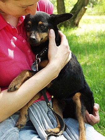 ####2012-05-21: Skierka to bardzo mała psina, maksymalnie waży 3 kg####2012-05-25: Skierka ze swoją ulubioną Wolontariuszką Magdą, chwila czułości:-)####2012-05-25: Skierka potrzebuje dużo kontaktu z człowiekiem, dzięki temu będzie gotowa do adopcji####2012-06-03: Skierka w swoim posłaniu w DT####2012-06-03: Do twarzy Skierce w tym różu:-)