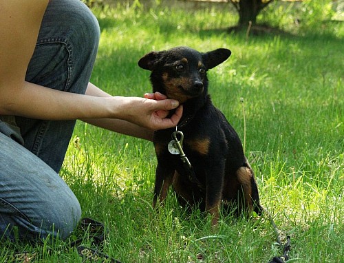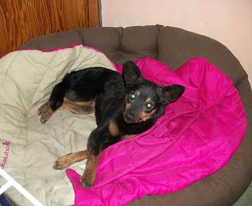 Skierka to suczka z tego samego miejsca co psinki Aza, Lola, Bakalia - z interwencji Toz'u z Rogoźna. Została przywieziona do schroniska w połowie kwietnia 2012 roku. Skierka już jest coraz śmielsza, dziarsko kroczy na spacerku na smyczy, lubi przesiadywać na kolanach u Wolontariuszek, będzie bardzo miłą towarzyszką każdej rodziny.