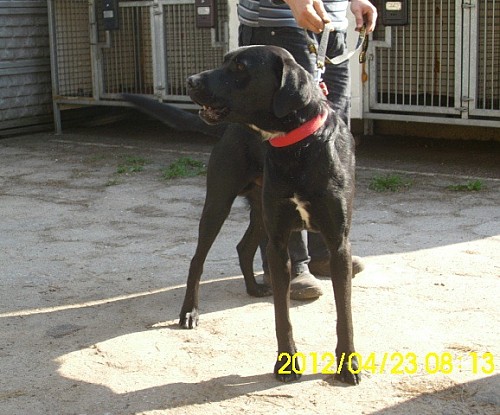 Natan to duży, czarny pies, przywieziony 23 kwietnia 2012 roku z Murowanej Gośliny. Natan reaguje na komendy siad i podaj łapę. Został przywieziony w czerwonej parcianej obroży.