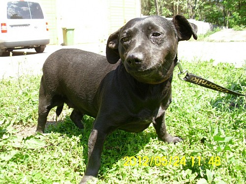 Ira to mała suczka, czarno umaszczona, przywieziona 23 maja 2012 R. z Chludowa z ul. Dworcowej.