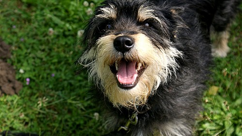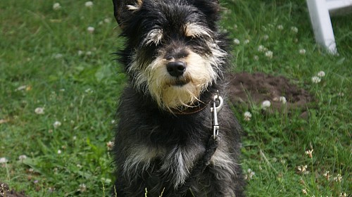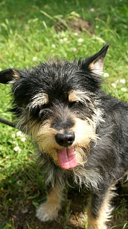 Smyk to około 2 letni piesek, mix sznaucera średniego, jest przyjazny dla ludzi i psów. Nie toleruje dzieci do lat 3.