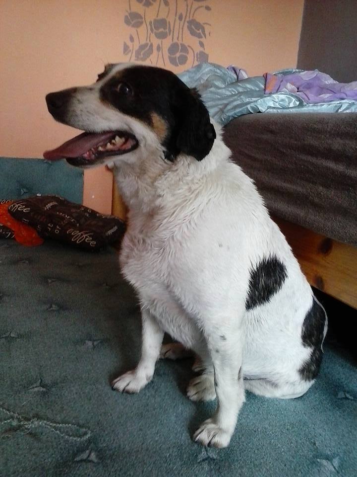 Łatek to ok. 6-7 letni pies, biały w czarne łatki (stąd jego imię:-), średniej wielkości, został przywieziony do Azorka w lipcu 2010 roku z Obornik. Łatek jest przyjaznym psem, uwielbia chodzić na spacerki, na początku jest podekscytowany i trochę ciągnie, ale w miarę spaceru uspokaja się. Łatek ostatnio był przeganiany przez inne psy na wybiegu, dlatego trafiła na dom tymczasowy do Wolontariuszki Magdy do Poznania.