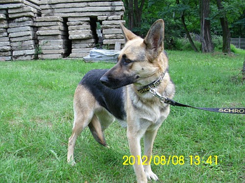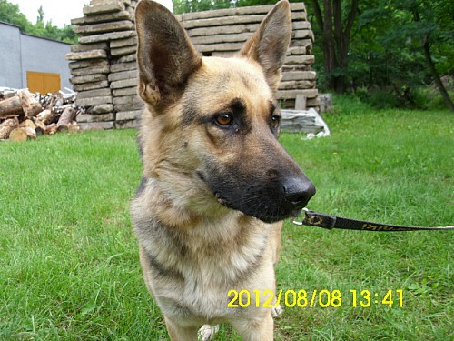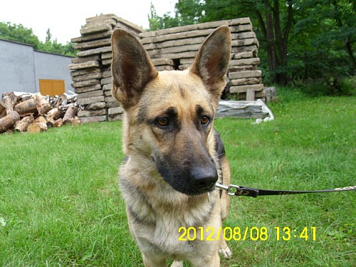 Stasia została przywieziona z Obornik na początku lipca 2012 roku - błąkała się wzdłuż rzeki Warty. Jest bardzo bojąca się i przestraszona, ale nie agresywna. Stasia została umieszczona na wybiegu dla psów przeskakujących - niestety z innych wybiegów psina wyskakiwała. W nowym domu dobrze byłoby, żeby Stasia mieszkała w domu, a nie na ogrodzie, bo jest duże prawdopodobieństwo, że może na początku uciekać:-(
