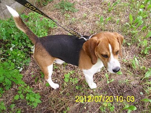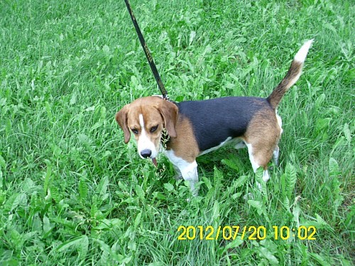 Bon to pies rasy Beagle przywieziony 19 lipca 2012 roku z miejscowości Murowanej Gośliny z ul. Promienistej (os. Zielone Wzgórze). Kontakt w sprawie odebrania psa: 665-054-582