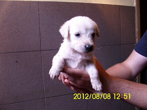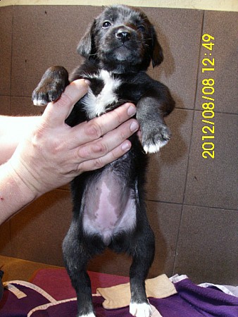 Bak - piesek: czarny z białym krawatem.####2012-08-12: Bianka - suczka: czarna z tylnymi białymi łapkami i białą końcówką ogona,####2012-08-12: Basia - suczka: czarna z najsłabszym białym na łapkach i małym białym krawatem,####2012-08-12: Biełka - suczka: cała biała,