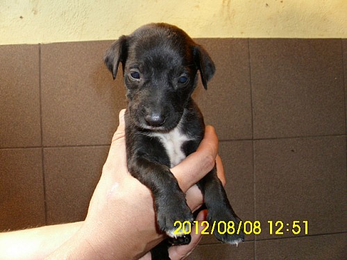 Bianka - suczka: czarna z tylnymi białymi łapkami i białą końcówką ogona,