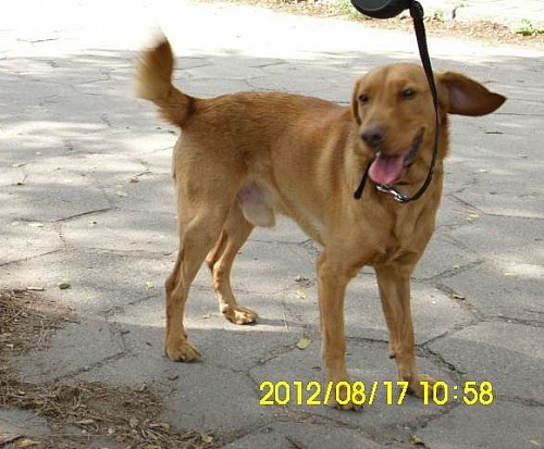 Cent został w październiku 2011 r. adoptowany z Azorka.Został nazwany Morisem - pies jest trzymany w domu, nie brudzi, jest wykastrowany. Ma tylko zachwianą tzw. hierarchie w rodzinie i jego obecni Właściciele nie potrafią rozwiązać tego problemu. Poszukujemy nowego domu dla psiaka.####2012-08-17: Cent jest usłuchanym psiakiem####2012-08-17: Nie jest duży, swobodnie może mieszkać w bloku####2012-08-17: Jest wesołym psiakiem