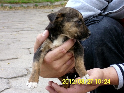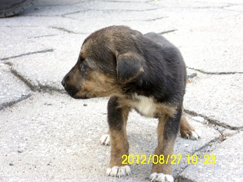 Toya to szczeniak suczka 6-8 tygodniowy (27.08.2012 r.) podrzucona z rodzeństwem (Toyem, To-To i Tost) do jednej z posesji na Bielawach w Obornikach. Suczka będzie mała.####2012-08-27: Toya jest malutka####2012-08-27: Jeszcze lekko nieporadna