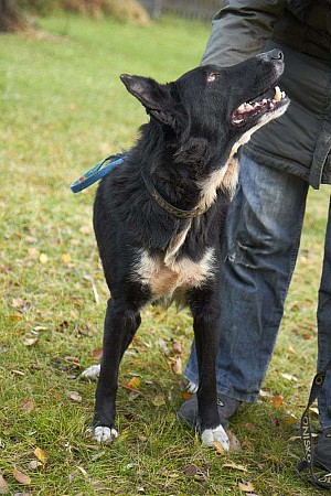 Niucha to starsza suczka przywieziona 18 września 2012 r. z gminy Oborniki. Jest dość duża - wygląda na to, że płynie w niej nieco krwi Husky. To bardzo miła psinka, bardzo lgnie do ludzi, lubi być głaskana, lubi się bawić z innymi psami i Wolontariuszkami. Na spacerkach Niucha jest bardzo wesoła, cały czas zachęca do zabawy, ale nie ciągnie, jest usłuchana. To bardzo sympatyczne suczka - delikatna, łagodna, uwielbiająca spacery. Pomimo niestety lekkiej nadwagi bardzo ładnie i chętnie biega, ma niezłą kondycję - została nauczona biegania przy rowerze, nadaje się na towarzyszkę w joggingu czy nordic walking. Nowy właściciel szybko doprowadzi jej figurę do poziomu wzorcowego. Niestety w schronisku trudno jej zapewnić wystarczającą ilość ruchu, a pannie apetyt dopisuje. To doskonały pies dla kogoś, kto nie chce się zmagać z nadmiernie dynamicznym, silnym psem, a jednocześnie lubi psy duże. Ona jest bardzo delikatna, uważna i reaguje na lekkie ruchy smyczy - nie ma potrzeby szarpania czy ciągnięcia. Naprawdę bezproblemowy pies godny polecenia.####2012-09-19: Wielki żal na tej psiny, wygląda na zagubioną w tym miejscu####2012-09-25: Niucha na swoim jednym ze spacerków####2012-09-25: Psinka w pełnej krasie####2012-09-25: Niucha jest bardzo otwarta do ludzi, nie boi się, wręcz lgnie do nich####2012-10-28: Niucha pragnie kontaktu z ludźmi...jest tego spragniona####2012-10-28: Wesoła z niej psina####2012-11-12: Niucha na spacerku z Wolontariuszką Magdą i Galonem:-)####2012-11-12: Psinka zachęca do zabawy...####2012-11-12: Klapnięte uszko...####2013-02-02: Niucha uwielbia głaskanie...jak każdy psiak####2013-02-02: Niucha na zimowym spacerku####2013-06-05: Niucha na spacerku####2013-06-05: Czas na głaskanie:-)