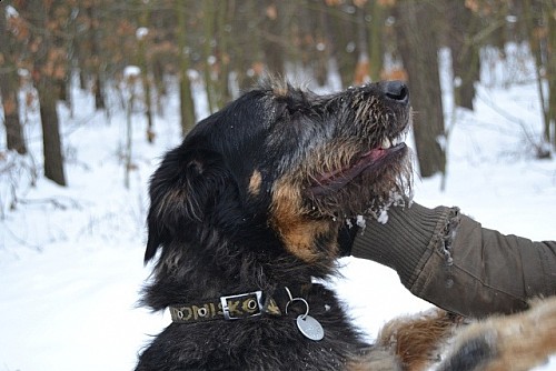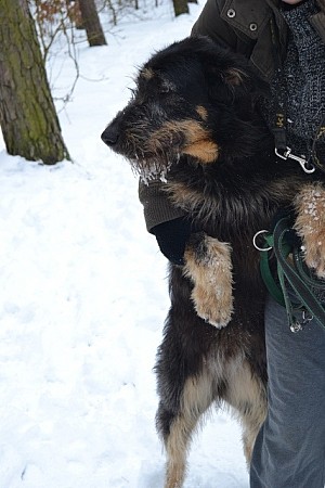 Wiga to młoda suczka, ok. 2 - 3 lata, szorstkowłosa z krótkim ogonem, wysterylizowana, o sierści łatwej do pielęgnacji. Trochę jakby wyżłowata? Została znaleziona 22 września 2012 r. w Gołaszynie koło Obornik. To bardzo łagodna, spokojna, delikatna i uczuciowa sunia. Całkowicie pozbawiona agresji, bardzo ładnie chodzi na smyczy, nie ciągnie, reaguje na każdy leciutki ruch linki. Bardzo ładnie biega na lince przy rowerze, nawet na ścieżce rowerowej przy ruchliwej, hałaśliwej szosie. Bardzo wpatrzona w człowieka, na spacerach spuszczona ze smyczy pilnuje się, lubi sobie powęszyć, ale na każde przywołanie niezawodnie przychodzi do opiekuna. To jeden z chętniej zabieranych na spacery psów - wszyscy ją lubią. Jeżeli ktoś przychodzi do schroniska i chce zabrać jakieś spokojnego, łagodnego, zdyscyplinowanego psa psa na spacer to Wiga spełnia w 100% takie kryteria. W zasadzie to pies dla każdego: dla aktywnych - można z nią pobiegać, pojeździć na rowerze ( ono będzie biegła obok, na rowerze jeszcze nie jeździ, ale jest pojętna) zabierać ją na długie wędrówki piesze i.t.p., ale nie jest to pies nadmiernie ruchliwy: dłuższy spacer w wolnym, medytacyjnym tempie też ją uszczęśliwi. Byle w towarzystwie człowieka. Idealnie nadawałaby się do domu z dziećmi lub jako towarzyszka osób starszych: jest wyjątkowo delikatna i cierpliwa. To pies, którego trzeba traktować subtelnie - nie wolno na nią krzyczeć, czy jej szarpać - ona sama stara się zrobić wszystko, żeby zadowolić człowieka. Ma bardzo wyraziste, mądre oczy, którymi uwielbia wpatrywać się w człowieka. To naprawdę pies na medal! Gdyby ktoś był nią zainteresowany, to można przyjść do schroniska i zabrać ją na spacer i poznać ją bliżej. Jeżeli ktoś nie wierzy, że są psy idealne, to Wiga zmieni jego poglądy!!