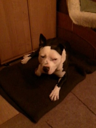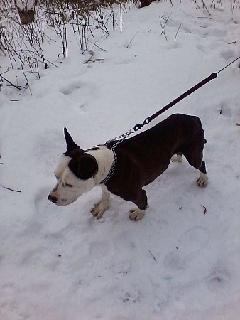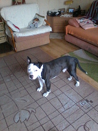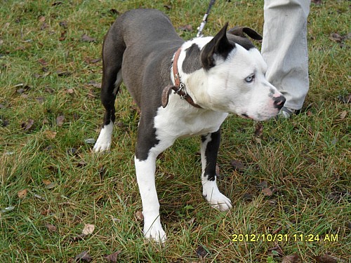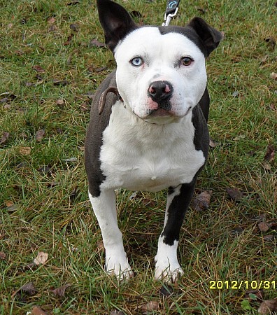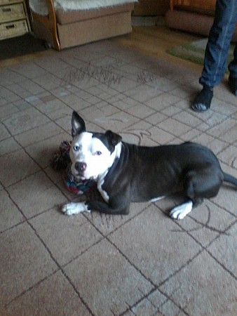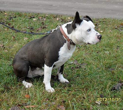 Bolo to pies rasy amstaff - jest bardzo przyjaźnie nastawiony do ludzi, widać, że mieszkał w domu, bo cały czas się trzęsie z zimna. Został przyprowadzony przez Straż Miejską z Obornik 27 października 2012 r. Bolo został wykastrowany (połowa listopada 2012 r.) Bolo lubi się bawić, ale robi to bardzo ostrożnie.