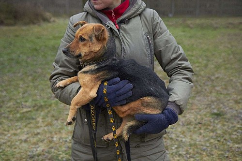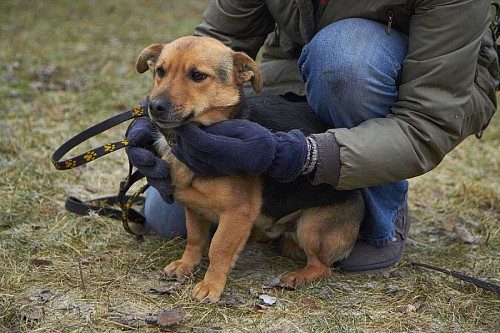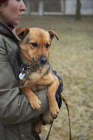 Pierwszy weekend 2013 roku był bardzo udany w naszym schronisku - 5 psów zostało adoptowane - między innymi Dyl. Jest to młody, bardzo fajny psiak, na pewno będzie wielką radością w nowym domku, trzymamy za niego kciuki.####2012-12-18: Psiak jest mocno przestraszony####2012-12-18: Jest to mały piesek####2012-12-27: Dyl z Wolontariuszką Magdą - nie chciał zejść jej z rąk, tak potrzebuje człowieka####2012-12-27: Dyl to mały piesek