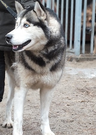 Kazar to pies Syberian Husky, pogodny z dwoma niebieskimi oczyma. Został przywieziony 9 stycznia 2013 r. z gminy Wronki