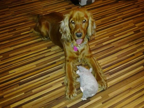 Rano przywitał mnie merdaniem ogonka, tuleniem i chęcią zabawy Jako ulubioną zabawkę wybrał sobie pluszowego szczurka. Dziś spędzi popołudnie sam, gdyż ja idę do pracy i to będzie przełomowa chwila dlatego dalsze relację zdam jutro Jest strasznie kochany i szybko się uczy, na smyczy idzie grzecznie, reaguje już na swoje imię, na komendę zostaw i nie wolno. Kiedy osikał głośnik (dziś powtórka była) wiedział, że zrobił źle. Jest mi strasznie