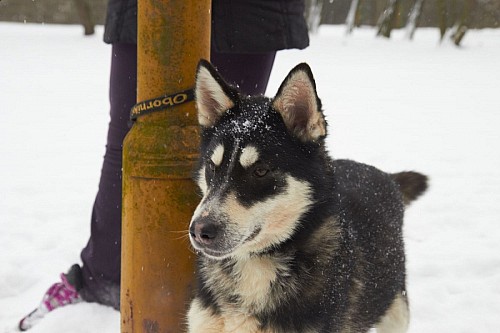 Eryk to młody około 1,5 - 2 letni pies mieszaniec husky, drobnej budowy. Jest spokojnym psem, trochę to nie typowe u psów w typie tej rasy, ale może to dlatego, że nie ma kontaktu z człowiekiem, a łaknie tego bardzo mocno. Eryk został odłowiony w kwietniu 2012 roku w Rokietnicy na ul.Rolnej 33, do naszego schroniska trafił w połowie stycznia 2013 r. Eryk jest wykastrowany.