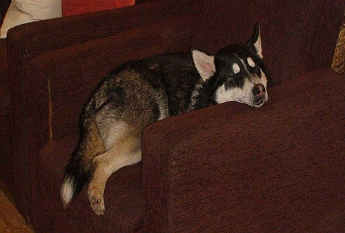 17 lutego 2013 r. - czyli miesiąc po przybyciu do naszego schroniska Eryk pojechał do domu...teraz ma na imię PIRIS i ma się dobrze. Zamieściliśmy zdjęcia z nowego domu - to pierwszy dzień, jak każdy pies po wyjściu ze schroniska Eryk odsypiał...