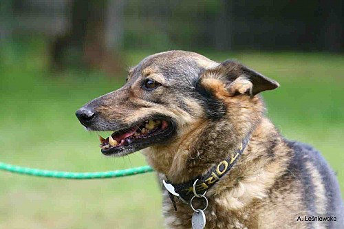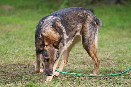 Suczka z gminy Rokietnica- przyjechała do nas ze schroniska w Jędrzejewie. Nie na zapewne niczego poza podwórkiem, nadal nie ufa gwałtownym ruchom nieznanym jej osób.