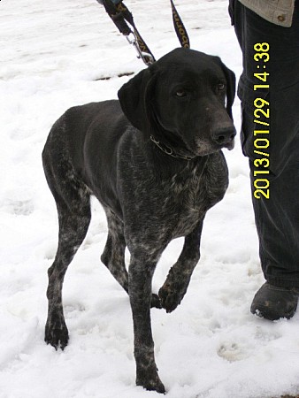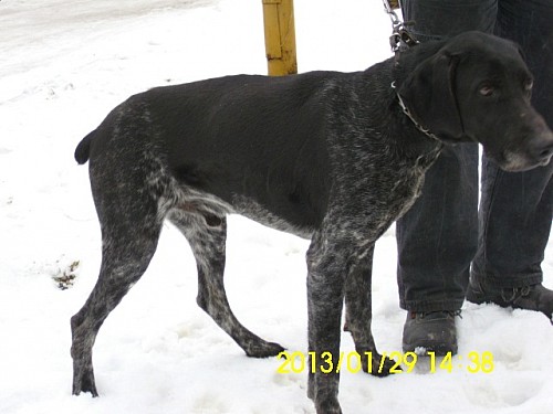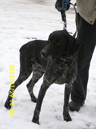 Omyk to wyżeł, przywieziony pod koniec stycznia 2013 r. z Rożnowa, kręcił się na ul. Marszewieckiej od tygodnia. Pies jest posłuszny i zadbany, mamy nadzieję, że jego Właściciel szybko się po niego zgłosi, bo dla tej rasy psów pobyt zimą w schronisku to ciężki czas.