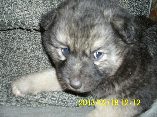 Szczeniak suczka Szaza, przywieziona z okolic Murowanej Gośliny w połowie lutego 2013 r. razem z 3 swojego rodzeństwa. Psiaki będą duże.