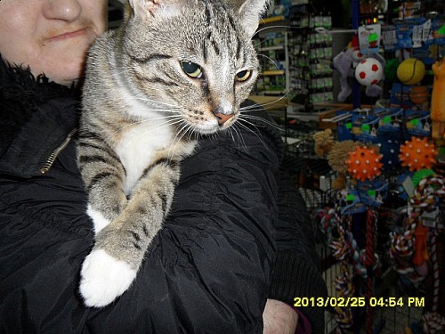 Łobuz to około 7-miesięczny kocurek.Jest wysterylizowany.Korzysta z kuwety.