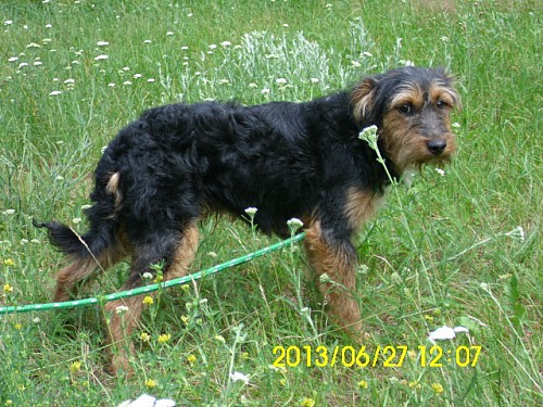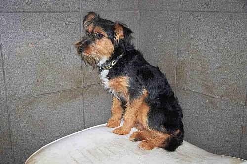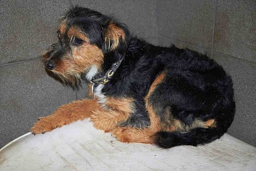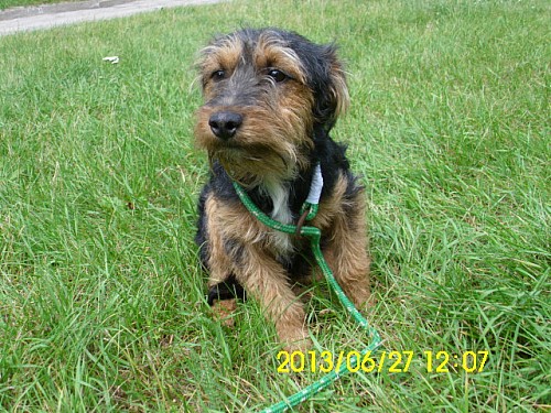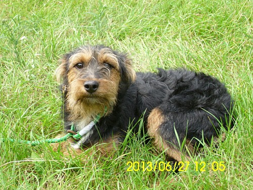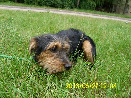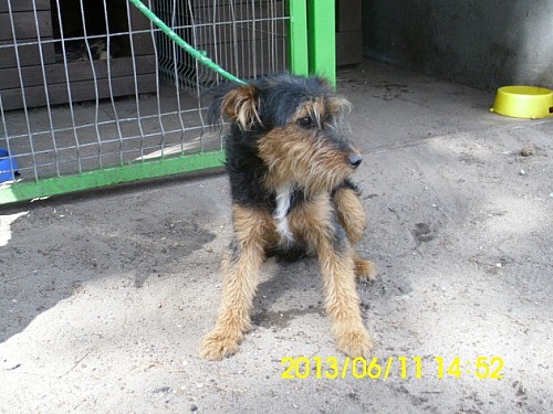 Kleks to mały psiak przywieziony 11 czerwca 2013 r. z gm. Suchy Las ze Złotkowa z ul. Złotej. Psiak był wystraszony. Jeżeli zostaje się z nim sam na sam to troszkę jest lepiej, potrzebuje jak najszybciej nowego domku!!!