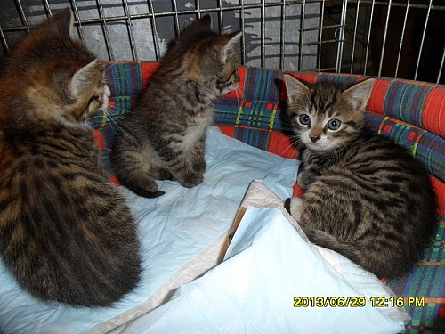 Kocurki w wieku około 7 tygodni czekają na nowe domy.