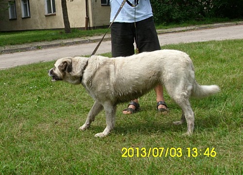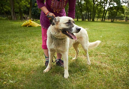 Koka to duża, młoda, około dwuletnia suczka - prawdopodobnie miks owczarka kaukaskiego. Pies trafił do schroniska na początku lipca 2013 r. po raz drugi - osoba, która go adoptowała jako szczeniaka trzymała go cały czas na łańcuchu i pies został odebrany właścicielowi w trybie interwencyjnym. Suczka jest przyjacielska, łagodna, ale raczej nie była najlepiej traktowana - przy jakiś gwałtowniejszych gestach przypada do ziemi. Raczej nigdy nie chodziła na smyczy, ale jest inteligentna i szybko się uczy. Koka dobrze dogaduje się z innymi psami - mieszka na wspólnym wybiegu. Nowy właściciel powinien być cierpliwy i wyrozumiały. Należy najpierw zdobyć jej zaufanie i postępować łagodnie, ale konsekwentnie i stanowczo. Suczka jest przyjacielska, garnie się do ludzi, przy okazaniu jej zrozumienia będzie wspaniałym psem. Nie boi się ruchu ulicznego, nie reaguje strachliwie na hałas czy nowe sytuacje. Dobrze nadawałaby się do domu z ogrodem. Nie jest znany jej stosunek do dzieci i kotów. Komuś kto postępuje z nią łagodnie pozwala zrobić ze sobą wszystko: oglądanie zębów, szczotkowanie, dotykanie. To pies o ogromnym potencjale - ktoś kto będzie potrafił zdobyć jej szacunek i przyjaźń będzie nią zachwycony.