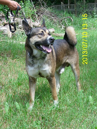 Rex 2 to mix Akita przywieziony 11 lipca 2013 r. z Rogoźna. Właściciel został zlicytowany przez komornika, a psa zostawił u sąsiadki. Zwierzak niestety był zbyt duży jak dla niej i trafił do schroniska. Rex jest dla ludzi bardzo łagodny i przyjazny, ale dla psów niestety nie - zwłaszcza dla samców. Pies pięknie chodzi na smyczy, jest czysty, mieszkał w domu. Został wykastrowany. To wyjątkowy zwierzak - osoby które zna wita entuzjastycznym wyciem i charakterystycznym dla akity jodłowaniem. Uwielbia biegać przy rowerze, wspaniale współpracuje z kolarzem i biega jak prawdziwy atleta. Rex od 17 września 2013 r. miał nowy dom, miał być psem stróżującym w jednym z pobliskich zakładów. Niestety pies zupełnie nie sprawdził się w roli stróża - zamiast oszczekiwać przechodzące osoby - witał je entuzjastycznie. Próby uczenia go agresji spowodowały, że pies trochę się wycofał i stał się nieco nieufny. Po powrocie do schroniska i wycieczce rowerowej po lesie wyraźnie odzyskał rezon. Rex to pies, który wymaga zdecydowanego przywództwa, ale on nie znosi brutalności i przymusu. Dla Pana, którego będzie szanował zrobi wszystko. To typowy Akita: niezależny, trochę uparty, ale nieprzekupny i lojalny wobec ''swoich'' ludzi. On bardzo potrzebuje towarzystwa człowieka i pobyt w schronisku mu nie służy. Jeżeli ktoś uwzględni typowy dla tej rasy charakter psa, to będzie tym uczuciowym zawadiaką zachwycony. To idealny pies dla osoby aktywnej - może biegać, chodzić na długie wycieczki, nosić swojemu panu część ekwipunku, ciągnąć sanie. Każdy rodzaj aktywności, oprócz oszczekiwania przechodniów będzie dla niego idealny.####2013-07-11: Rex 2 to piękny pies####2013-07-11: Pies chodzi ślicznie na smyczy####2013-10-26: Życie za krat:-(