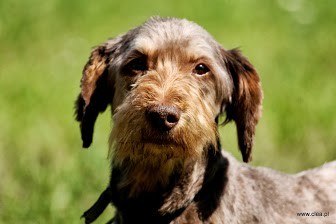 Fifi - pięknego koloru jamnikowaty piesek. Trafił do schroniska parę dni temu. UWAGA - z łańcucha bez obroży z okolic Rogoźna! Taki maluszek! Ma strupy na szyi od tego ciężkiego, raniącego paskudztwa. Był jednym, zbitym, zapchlonym na maxa kołtunem. W narkozie został ogolony i spryskany środkiem przeciw insektom. Myślę, że życie już mu się mocno poprawiło. Ale jednak to nie DOM.